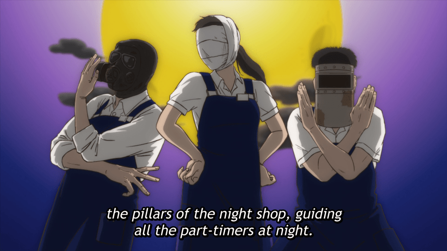There might be a drastic change in the art style and color palette—the voices may become comically high-pitched or incredibly deep. They might reference another series whether or not it is from the same studio, copying the poses and/ or dialogue, the genre might even shift entirely to become a fast-paced action scene.